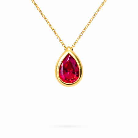 • Ασημένιο Κολιέ Δάκρυ με Κόκκινη Πέτρα 925