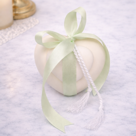 • Μπομπονιέρα Βάπτισης Καρδιά Κεραμική με Φιόγκο Μέντα