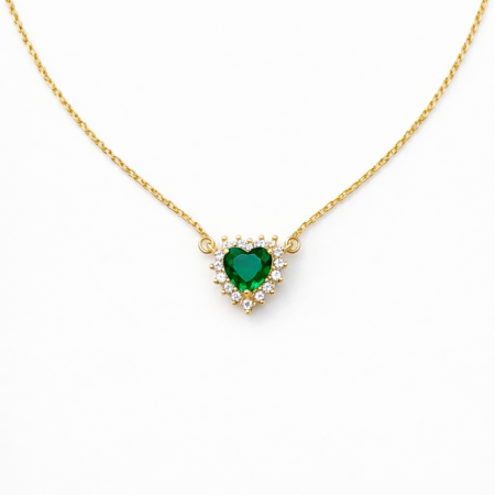 • Ασημένιο Κολιέ Καρδιά με Πράσινη Πέτρα 925
