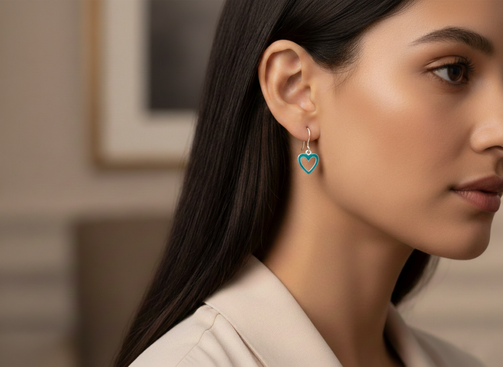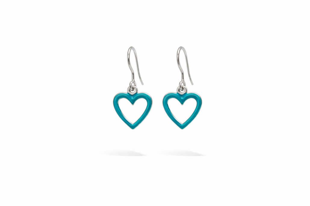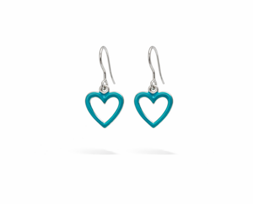 Γυναικεία κρεμαστά σκουλαρίκια καρδιά με τιρκουάζ σμάλτο από ασήμι 925. Το έντονο τιρκουάζ χρώμα σε συνδυασμό με το ρομαντικό σχήμα της καρδιάς δημιουργεί ένα κόσμημα που ξεχωρίζει και προσθέτει χρώμα και κομψότητα σε κάθε εμφάνιση.