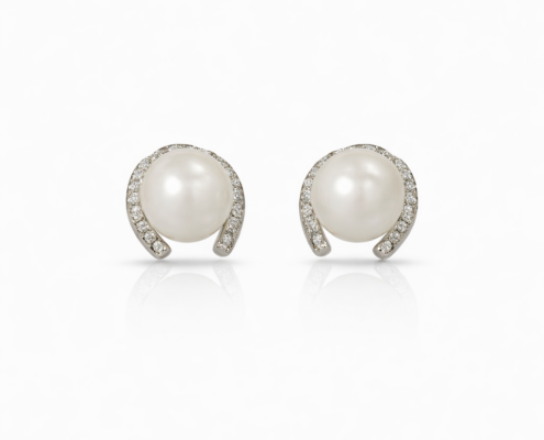 Ασημένια Σκουλαρίκια με Ζιργκόν και Πέρλα 925