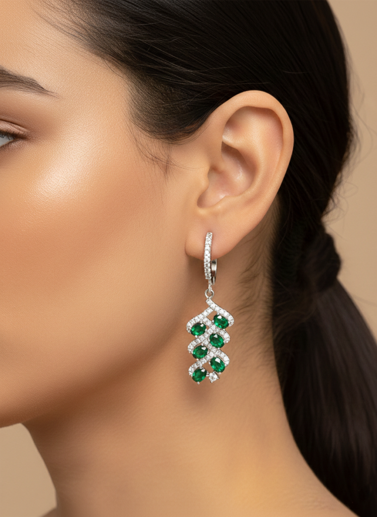 Γυναικεία σκουλαρίκια κρεμαστά με πράσινες πέτρες από ασήμι 925. Κομψό κόσμημα που χαρίζει φρεσκάδα και λάμψη σε κάθε εμφάνιση.