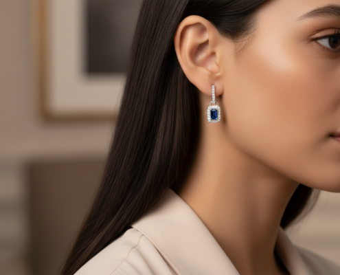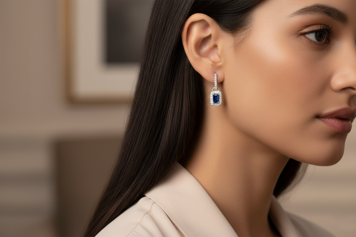 Γυναικεία σκουλαρίκια με μπλε πέτρα από ασήμι 925. Ένα κομψό κόσμημα που χαρίζει χρώμα και διακριτική λάμψη σε κάθε εμφάνιση.