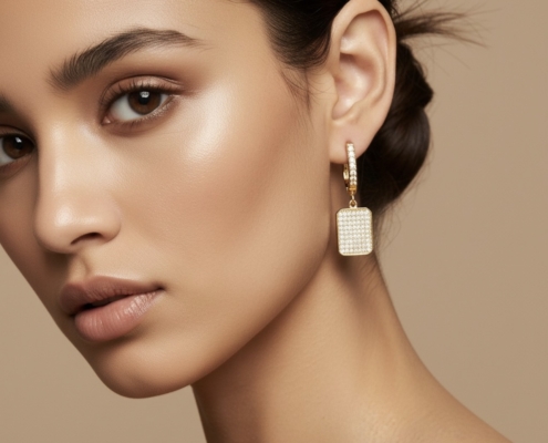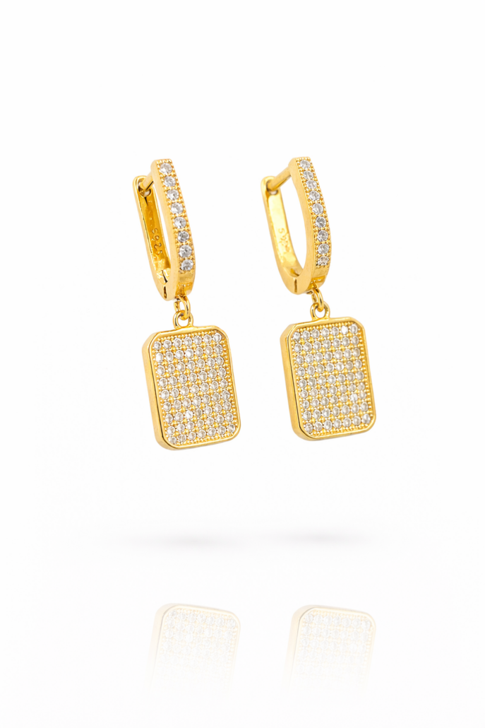 Γυναικεία σκουλαρίκια pave με ζιργκόν από ασήμι 925. Κομψό κόσμημα με λαμπερές λεπτομέρειες.