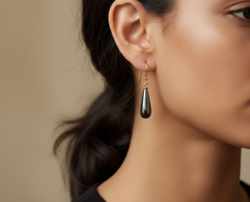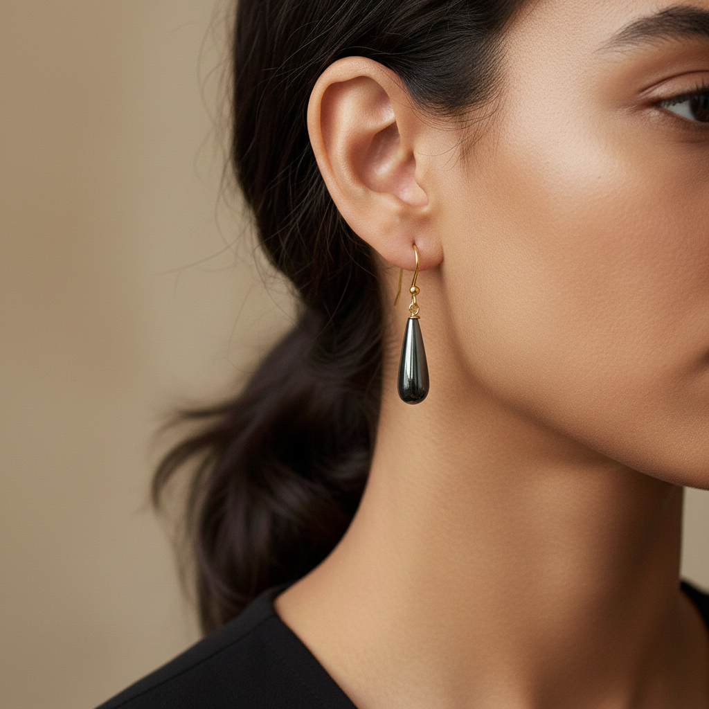 Ασημένια Σκουλαρίκια Σταγόνα με Πέτρα Αιματίτη 925