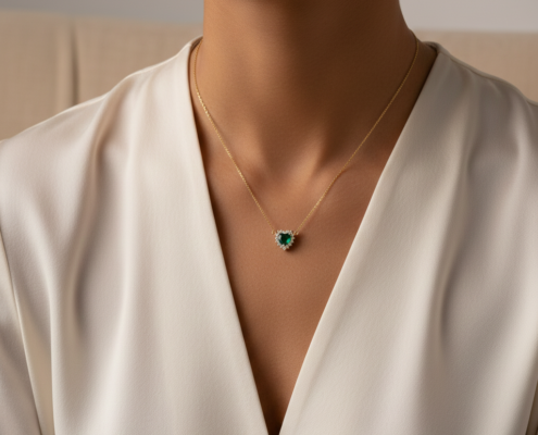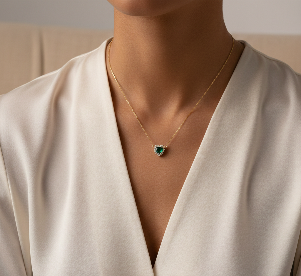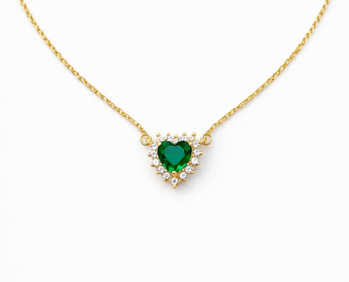 Γυναικείο κολιέ καρδιά με πράσινη πέτρα από ασήμι 925.