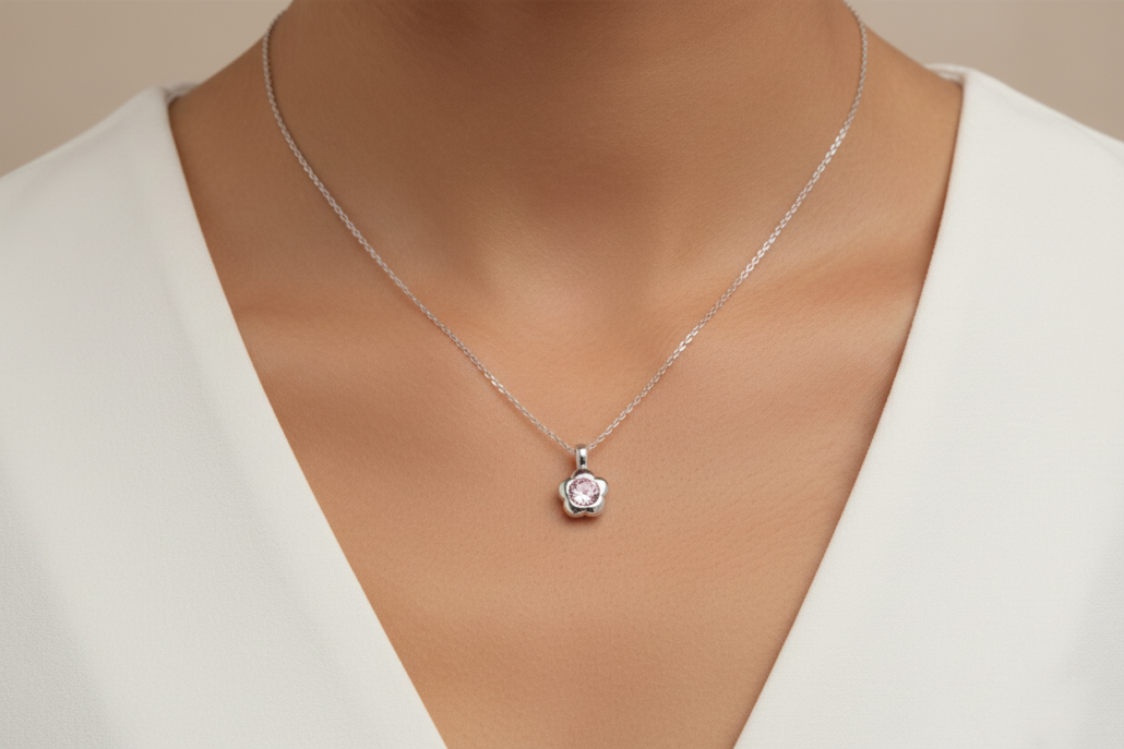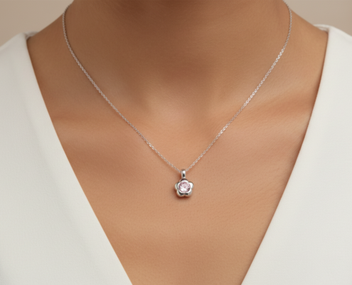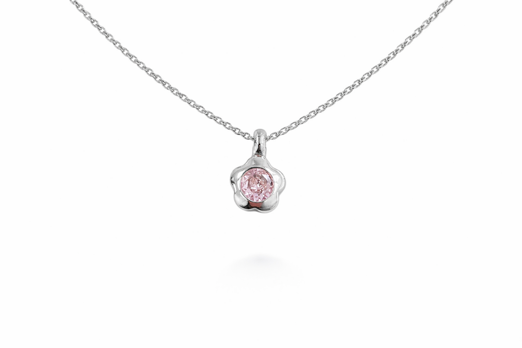 Ασημένιο Κολιέ Λουλούδι με Ροζ Πέτρα 925