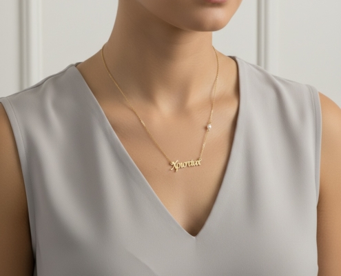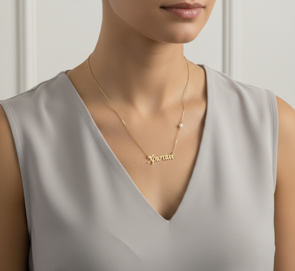 Το κολιέ κατασκευάζεται με το όνομα της επιλογής σας.