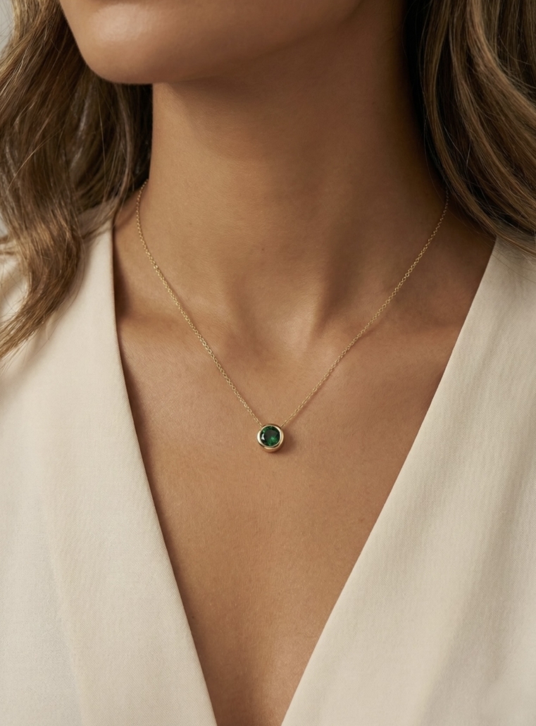 Γυναικείο κολιέ στρογγυλό με πράσινη πέτρα από ασήμι 925.