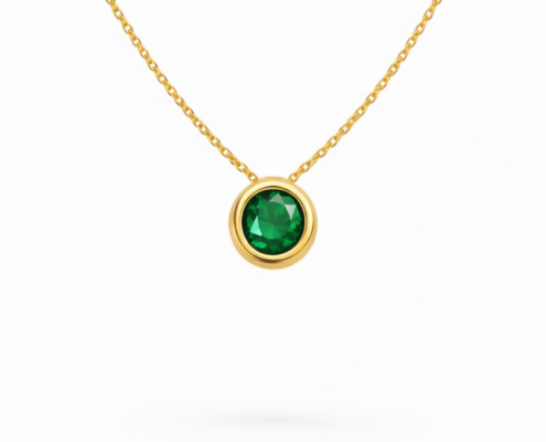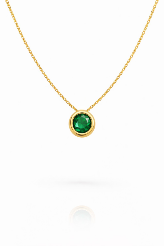Ασημένιο Κολιέ Στρογγυλό με Πράσινη Πέτρα 925