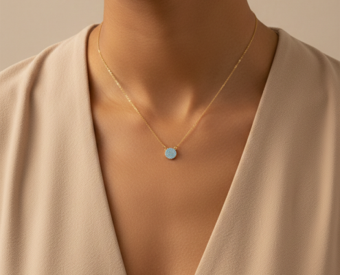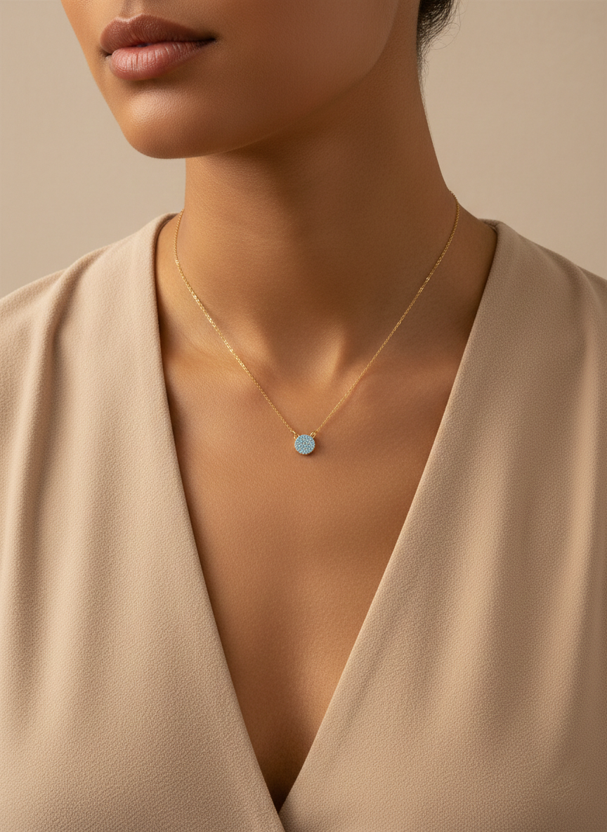 Γυναικείο κολιέ με θαλασσί πέτρες από ασήμι 925.