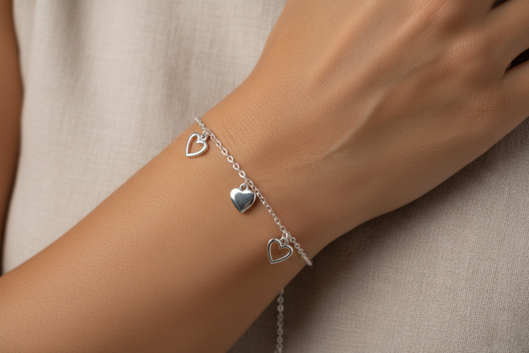 Ασημένιο Βραχιόλι με Κρεμαστές Καρδιές 925