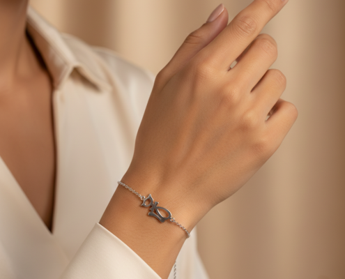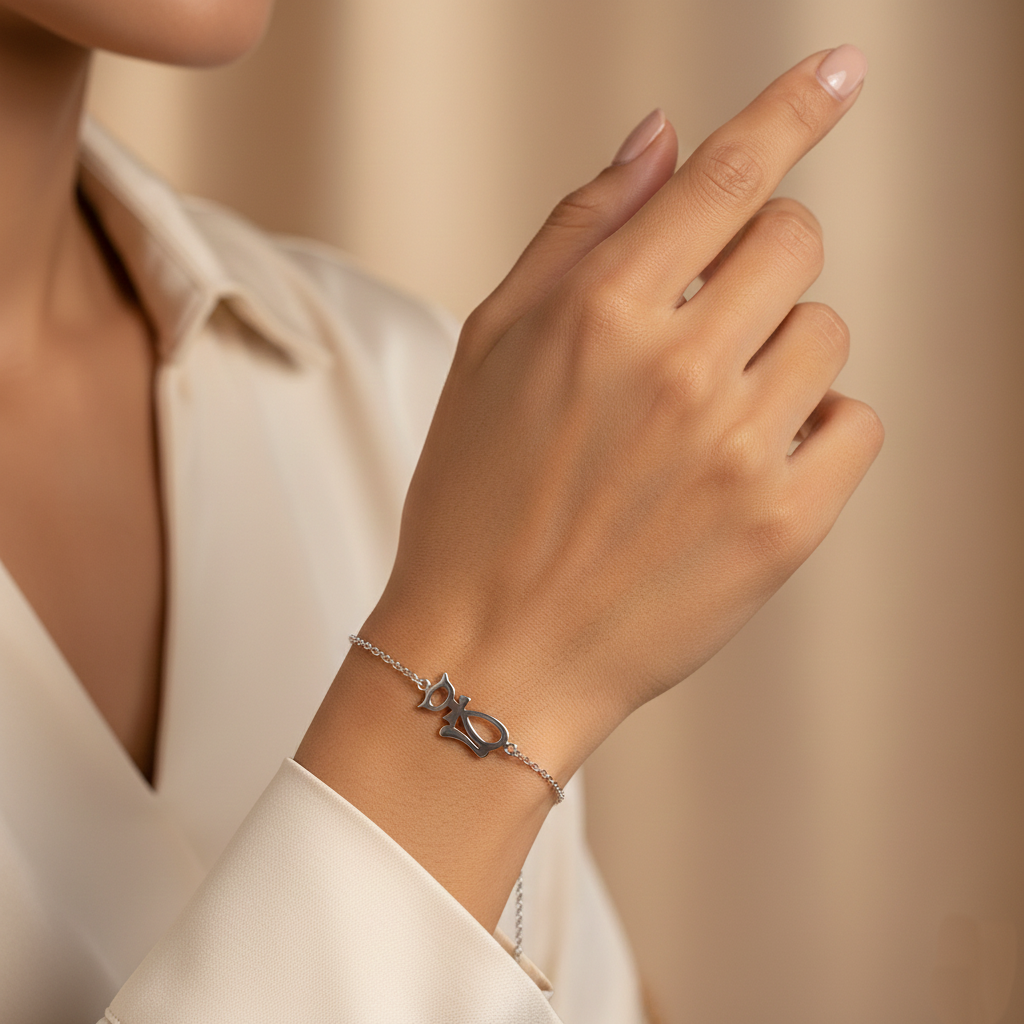 Minimal ασημένιο βραχιόλι με σχέδιο γάτας, κατασκευασμένο από ασήμι 925. Κομψό και διακριτικό κόσμημα για καθημερινή χρήση ή δώρο.