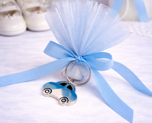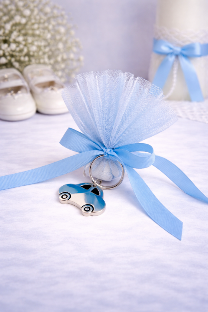 Μπομπονιέρα Βάπτισης Μπρελόκ Αυτοκινητάκι με Τούλι
