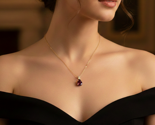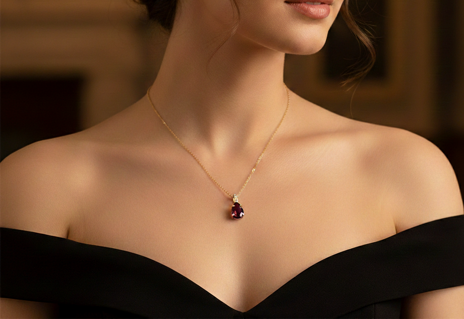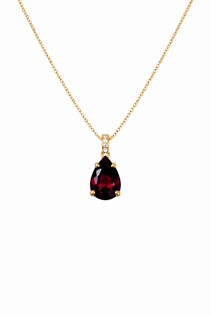 Ασημένιο Κολιέ Δάκρυ με Βαθυκόκκινη Τουρμαλίνη 925