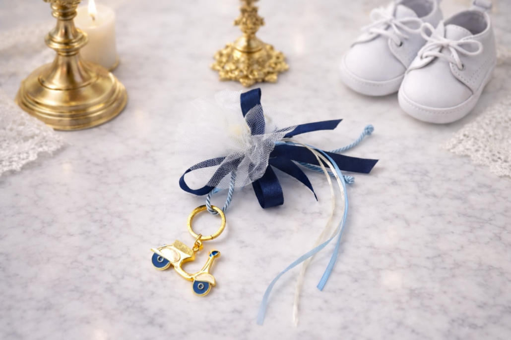 Μαρτυρικό Μπρελόκ Βάπτισης Βέσπα με Μπλε Κορδέλες