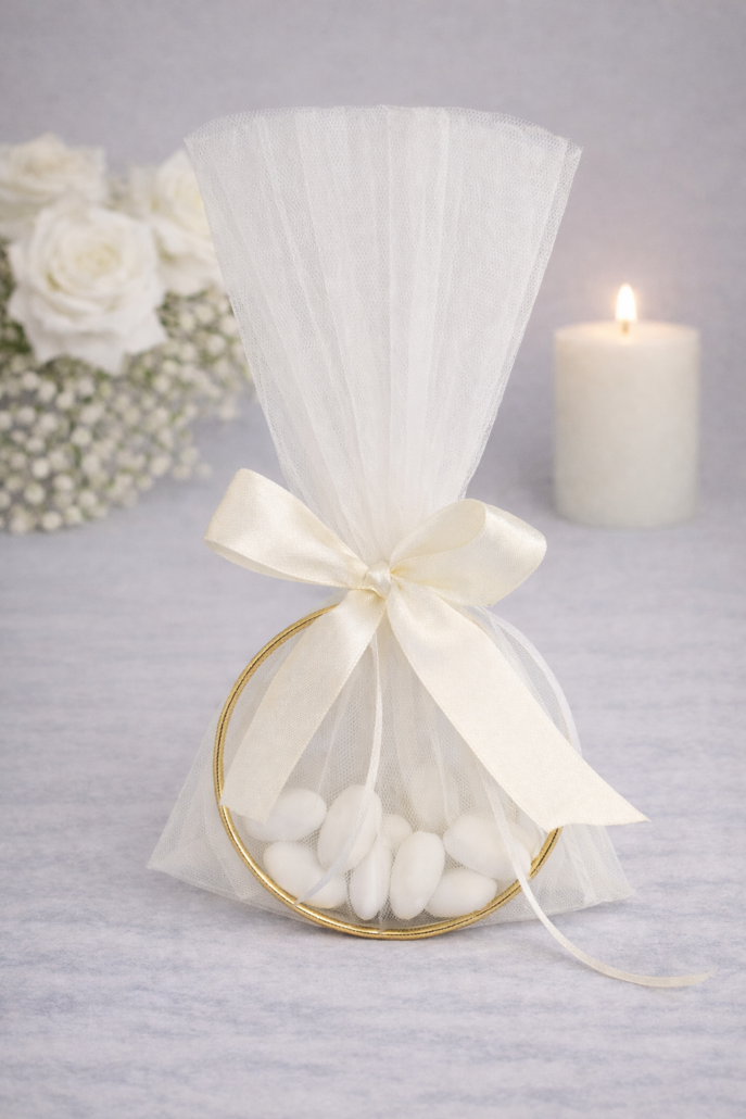 Μπομπονιέρα Γάμου Τούλινη με Χρυσό Κρίκο
