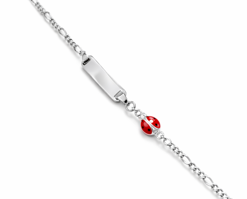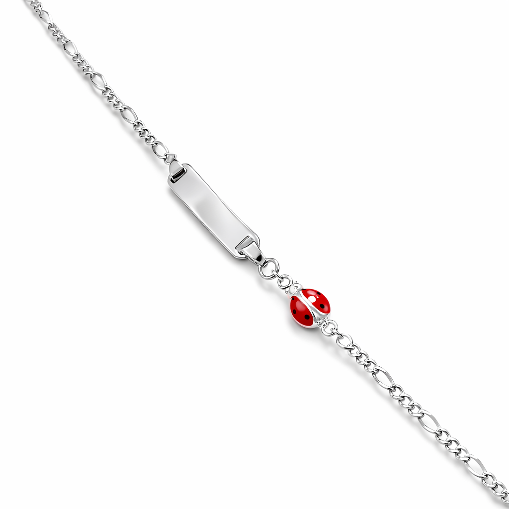 Παιδική ασημένια ταυτότητα βραχιόλι με διακοσμητική πασχαλίτσα, ένα διαχρονικό και συμβολικό κόσμημα για νεογέννητο και μικρό παιδί.