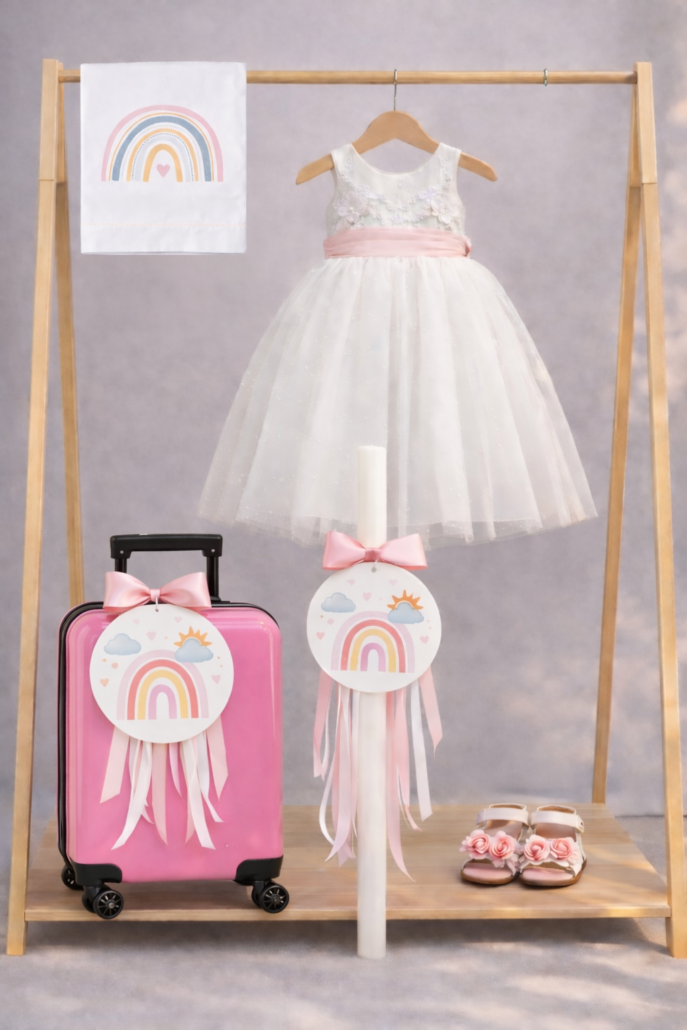 Ολοκληρωμένο Πακέτο Βάπτισης Κορίτσι με Θέμα Ουράνιο Τόξο Ροζ
