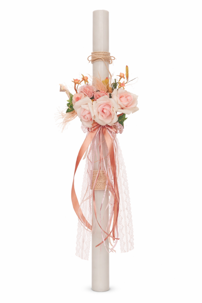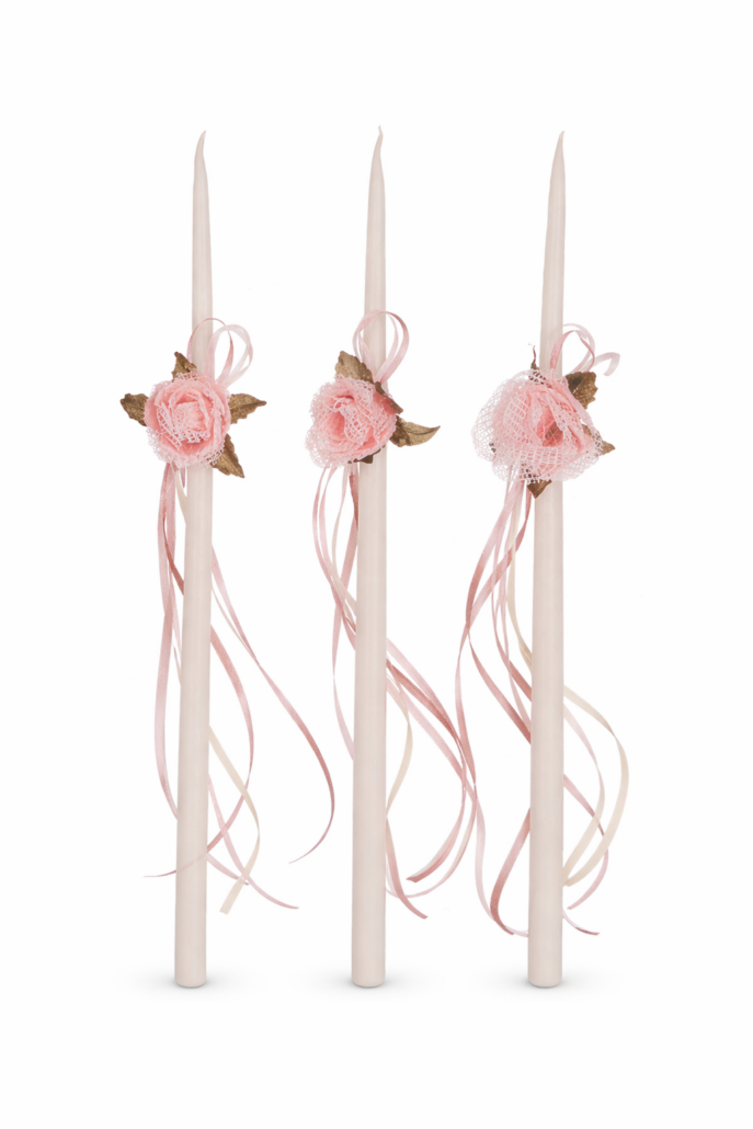 Ολοκληρωμένο πακέτο βάπτισης για κορίτσι σε ρομαντική αισθητική με παστέλ ροζ αποχρώσεις και floral λεπτομέρειες.