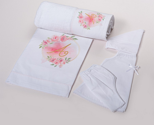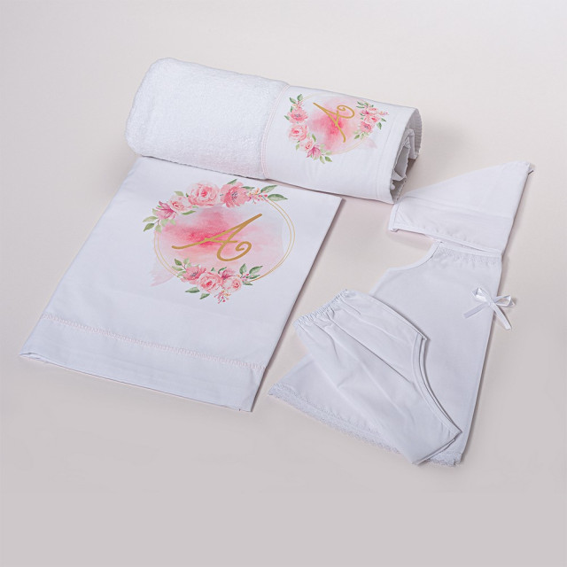 Ολοκληρωμένο Πακέτο Βάπτισης Κορίτσι με Θέμα Μονόγραμμα και Λουλούδια